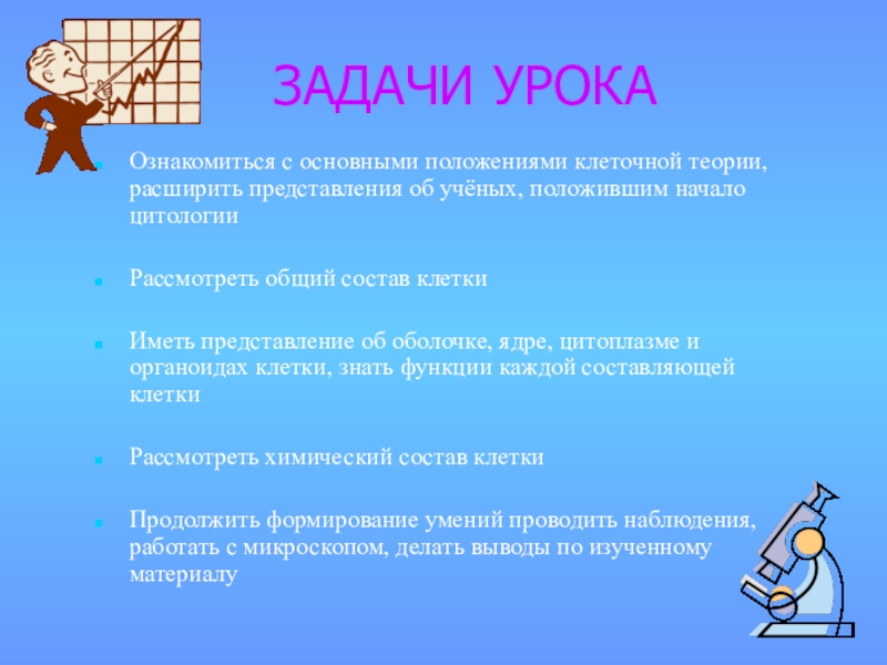 Ознакомиться с основными положениями клеточной теории, расширить представления об учёных,