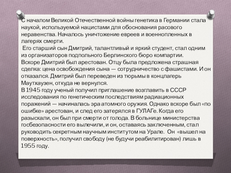 Слайд 15С началом Великой Отечественной войны генетика в Германии стала наукой, используемой