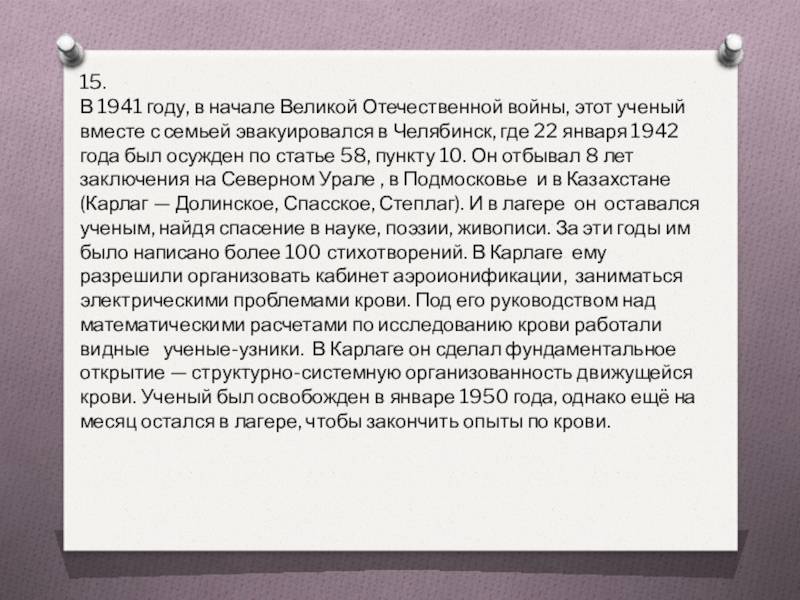 Но честный человек, выдающийся ученый не предал дела, которому посвятил жизнь.