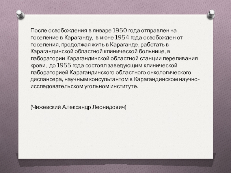 После освобождения в январе 1950 года отправлен на поселение в Караганду,