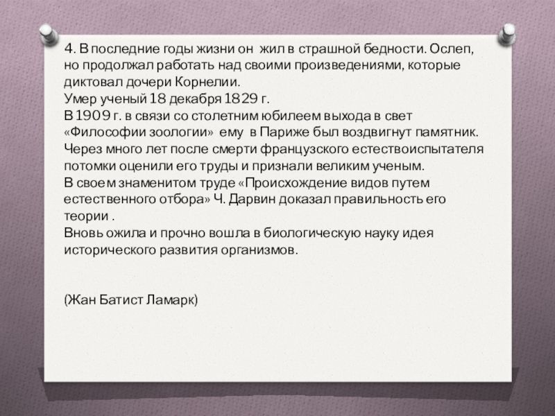 В 1909 г. в связи со столетним юбилеем выхода в свет «Философии зоологии» ему в Париже был воздвигнут памятник.