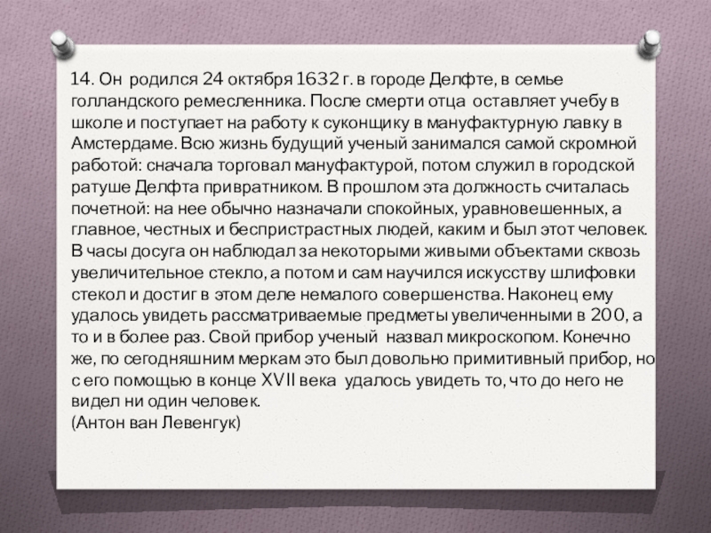 Слайд 1814. Он родился 24 октября 1632 г. в городе Делфте, в