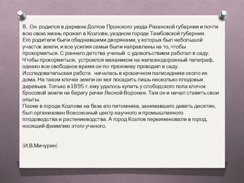 Слайд 98. Он родился в деревне Долгое Пронского уезда Рязанской губернии и
