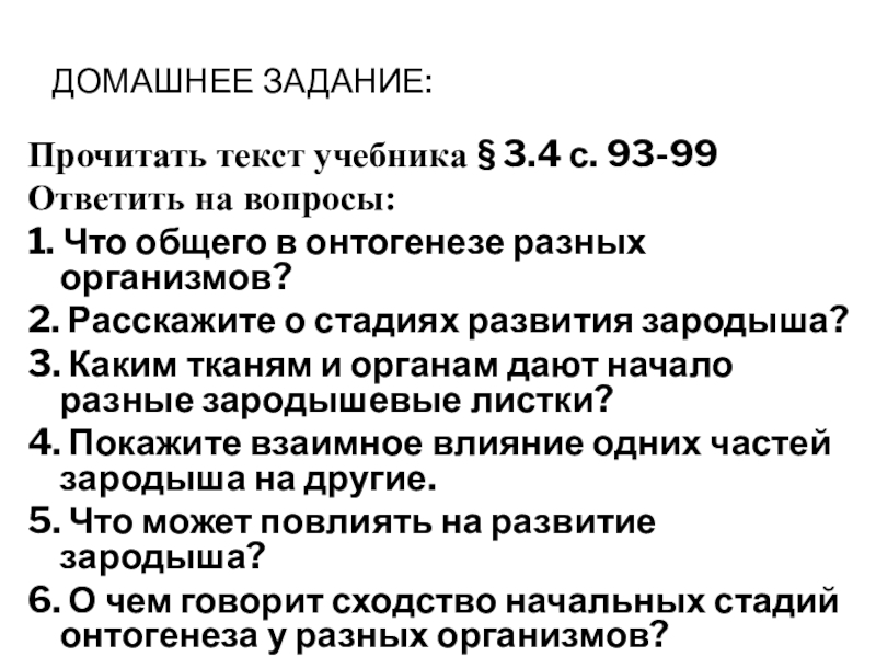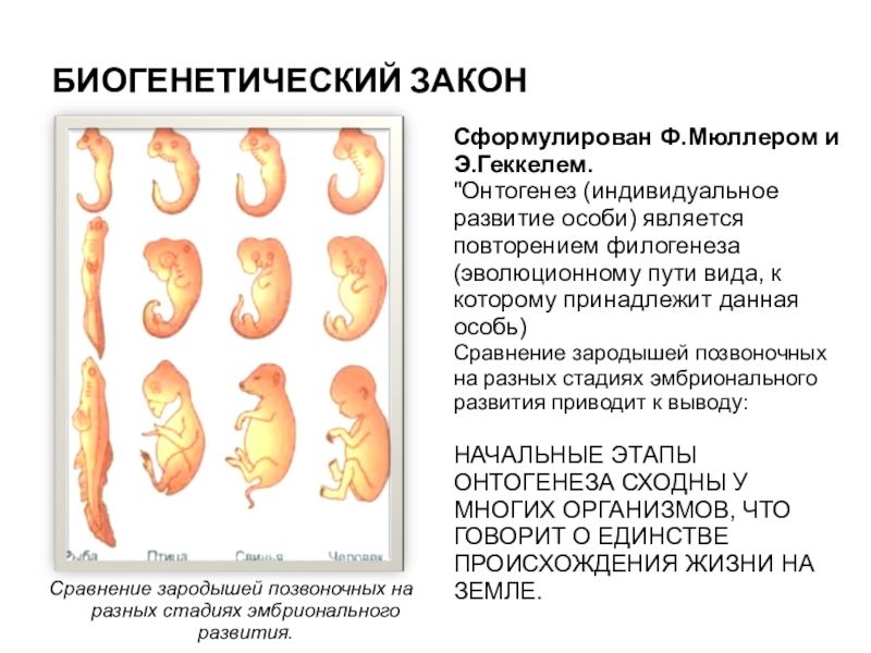 Сравнение зародышей позвоночных на разных стадиях эмбрионального развития.