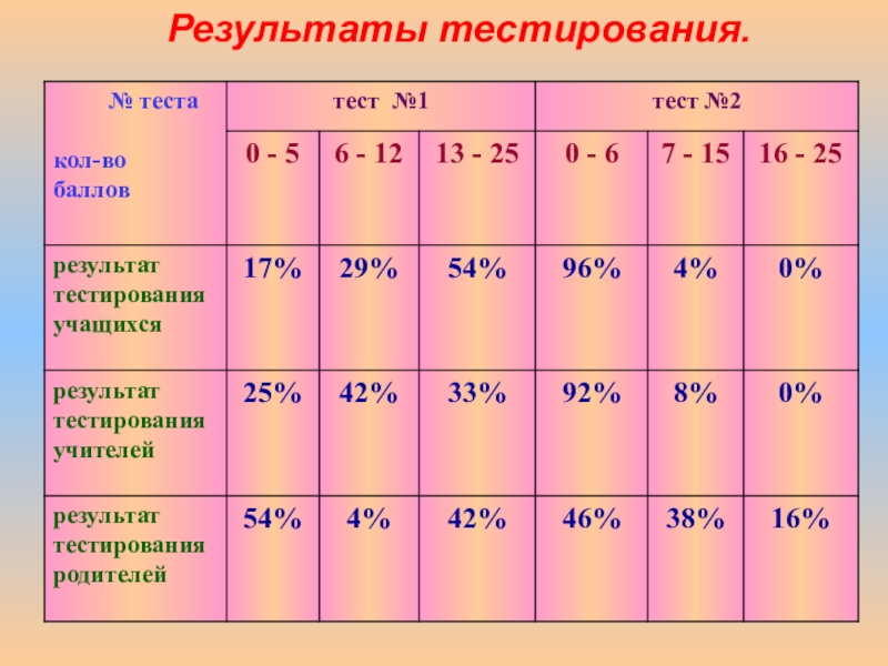 Слайд 60Результаты анализа данных: