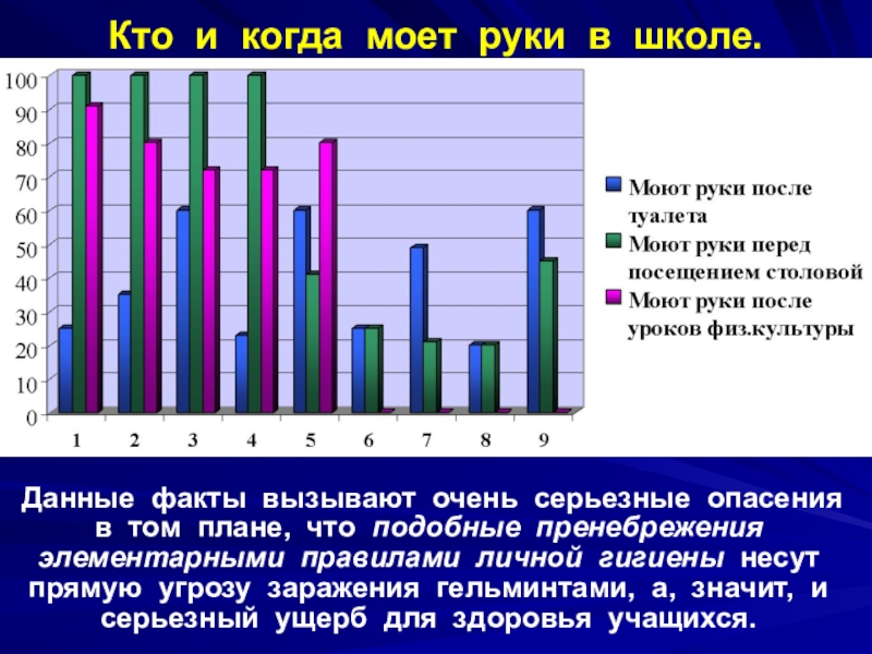серьезные опасения в том плане, что подобные пренебрежения элементарными правилами личной гигиены несут прямую угрозу заражения гельминтами, а, значит, и серьезный ущерб для здоровья учащихся.
