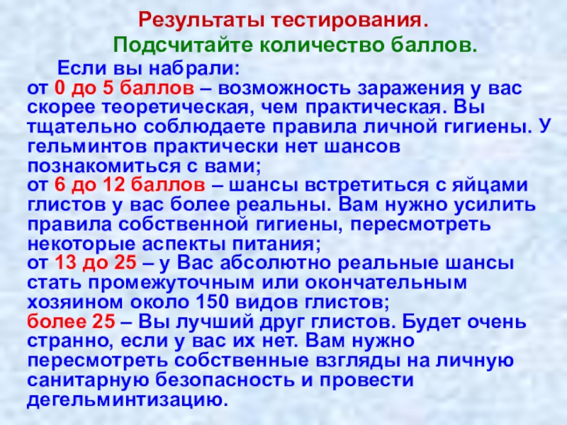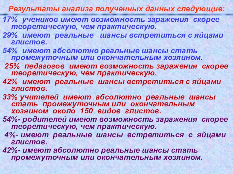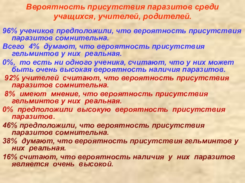 0%, то есть ни одного ученика, считают, что у них может быть очень высокая вероятность наличия паразитов.