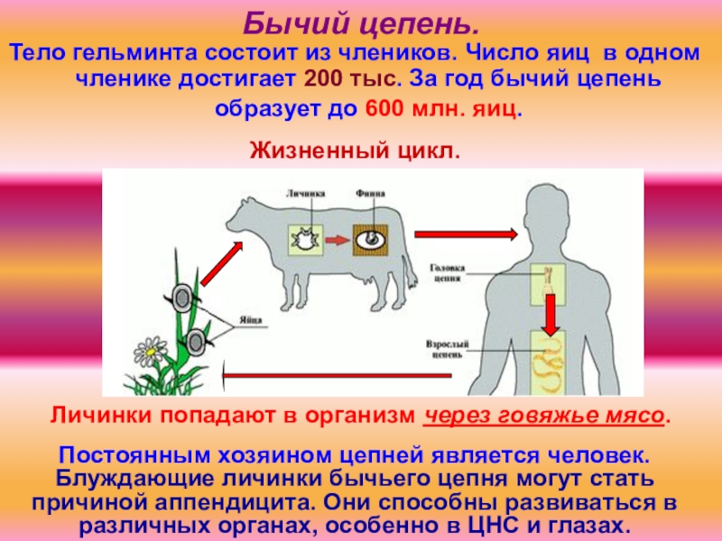 достигает 200 тыс. За год бычий цепень образует до 600 млн. яиц.