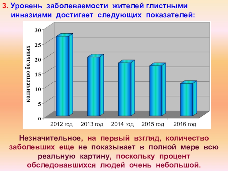 3. Уровень заболеваемости жителей глистными инвазиями достигает следующих показателей: