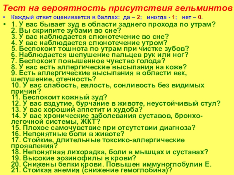 Слайд 58Вероятность присутствия паразитов.