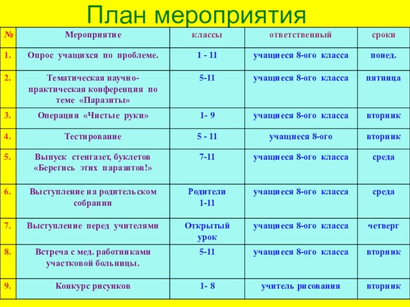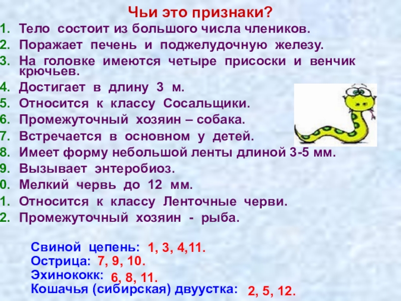 Слайд 70Установите соответствие между названиями паразитических червей и мер борьбы с ними.