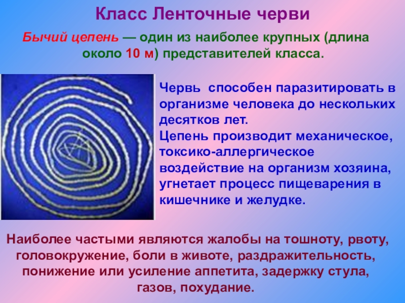 Бычий цепень — один из наиболее крупных (длина