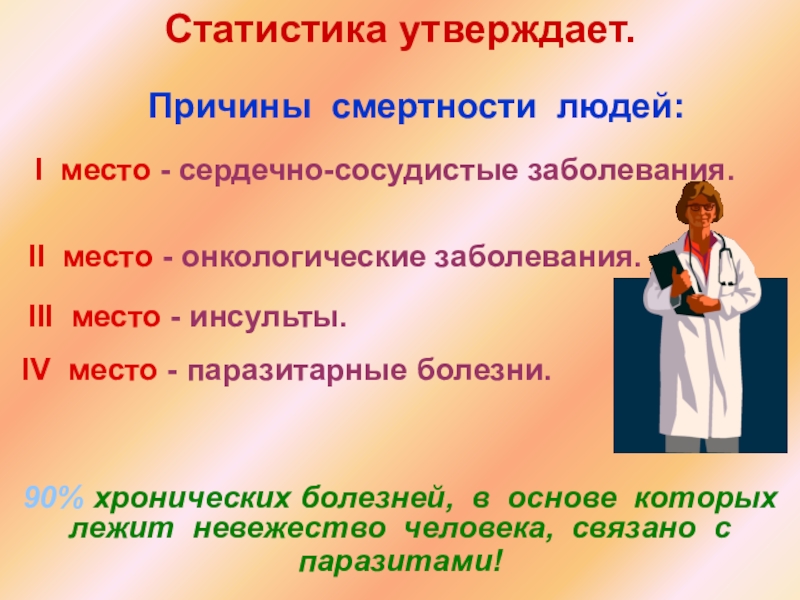 90% хронических болезней, в основе которых лежит невежество человека, связано с паразитами!
