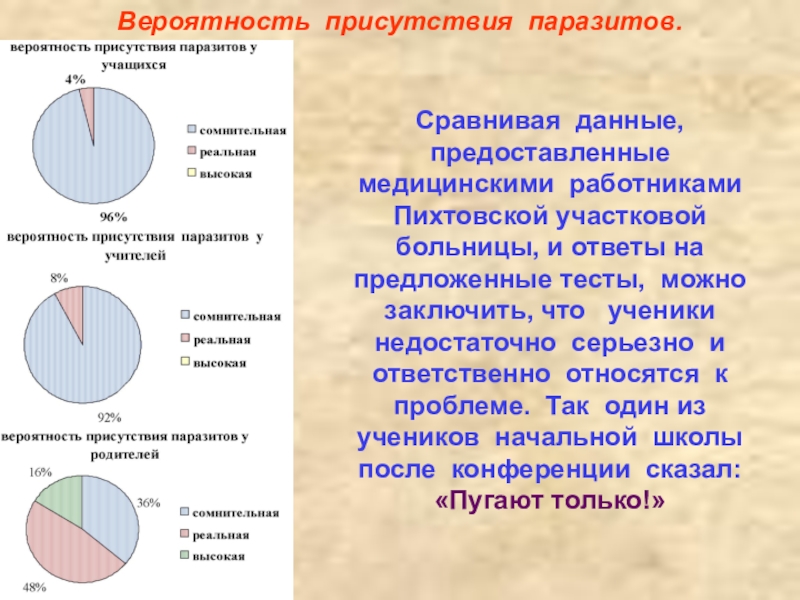 92% учителей считают, что вероятность присутствия паразитов сомнительна.