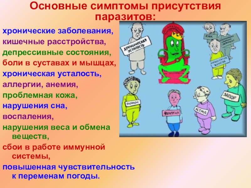 познакомить с симптомами заражения паразитами;