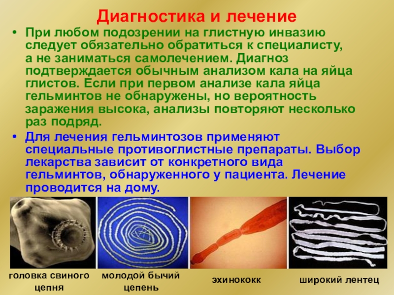 познакомиться с методами диагностики и лечения гельминтозов;