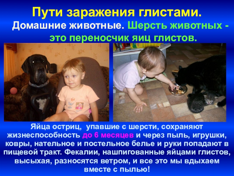 Заразиться можно везде и всюду. Не надо этого бояться. Надо вовремя применять адекватные, безопасные, надежные способы дегельминтизации.