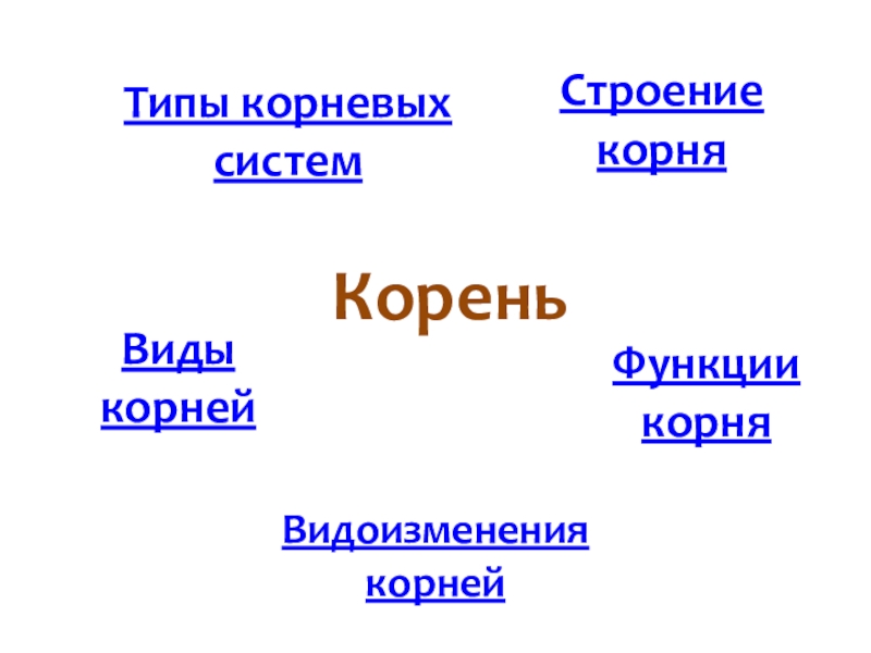 КореньВиды корнейСтроение корняТипы корневых системФункции корняВидоизменения корней
