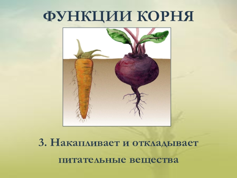 ФУНКЦИИ КОРНЯ3. Накапливает и откладываетпитательные вещества