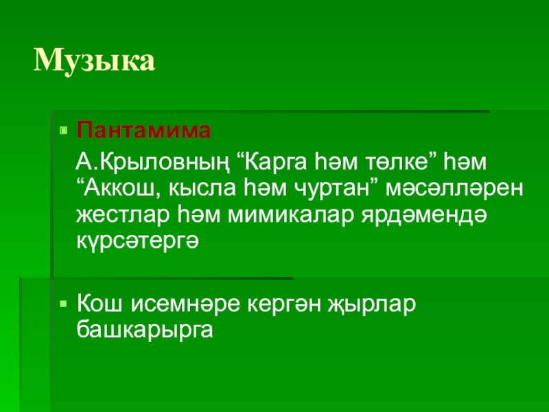 А.Крыловның “Карга һәм төлке” һәм “Аккош, кысла һәм чуртан”