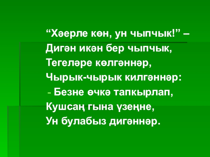 Слайд 11“Хәерле көн, ун чыпчык!” –