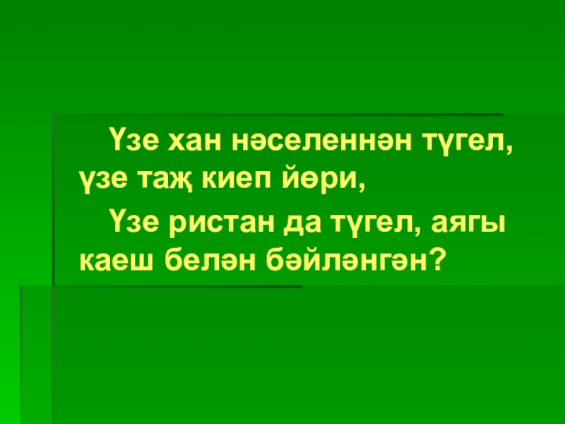 Слайд 15 Үзе хан нәселеннән түгел, үзе таҗ киеп йөри,