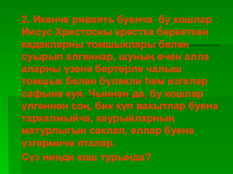 Слайд 82. Икенче риваять буенча бу кошлар Иисус Христосны крестка беркеткән кадакларны