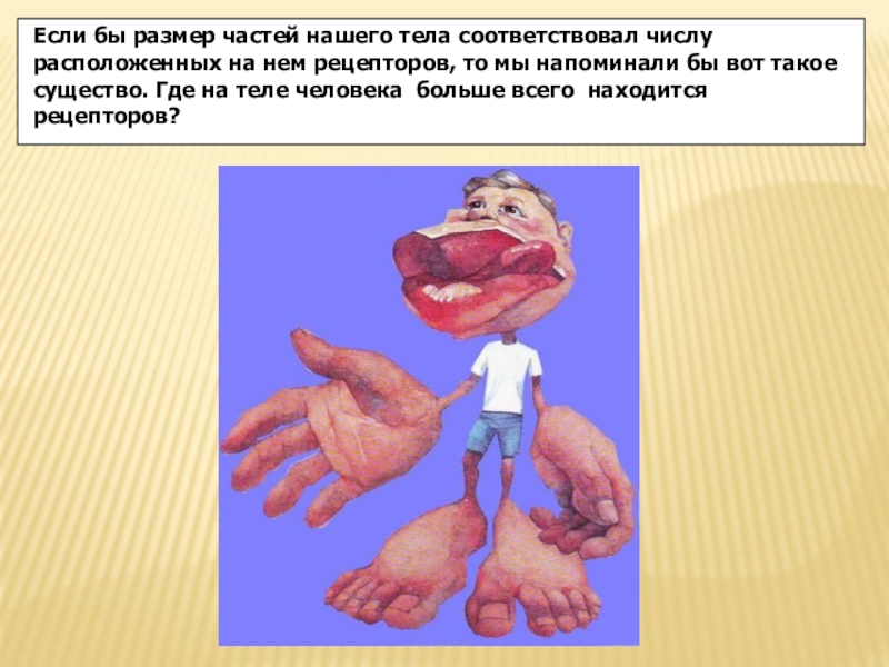 рецепторов, то мы напоминали бы вот такое существо. Где на теле человека больше всего находится рецепторов?