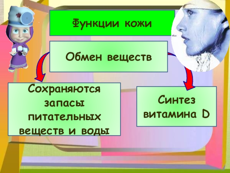 Функции кожиСохраняются запасы питательных веществ и водыСинтез витамина D  Обмен веществ