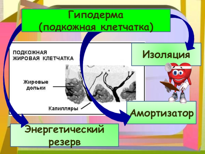 Изоляция Амортизатор Энергетический резервГиподерма (подкожная клетчатка)