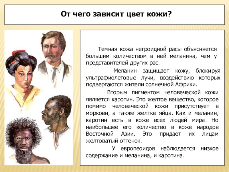 Слайд 8От чего зависит цвет кожи?