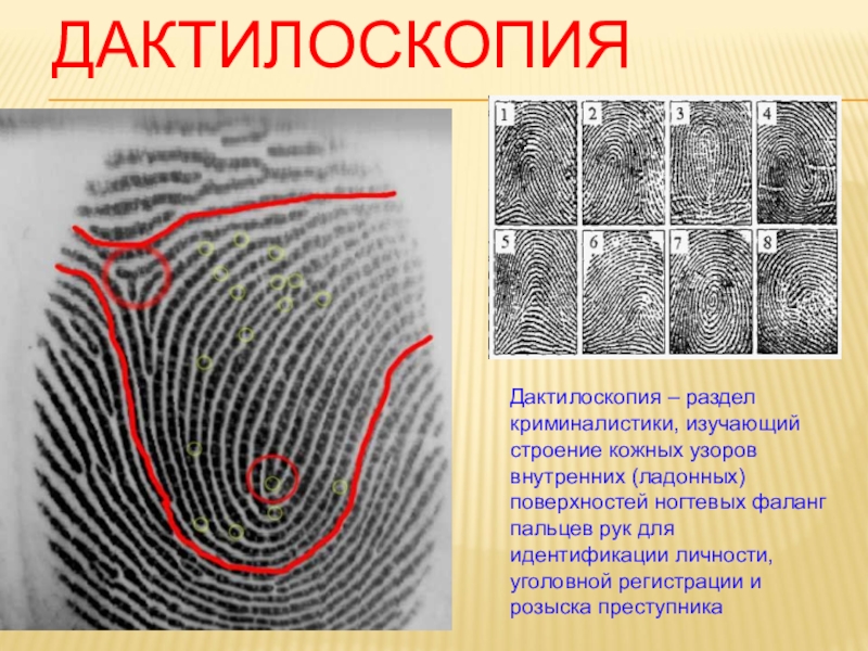 Дактилоскопия – раздел криминалистики, изучающий строение кожных узоров внутренних (ладонных) поверхностей