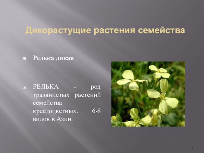 РЕДЬКА - род травянистых растений семейства крестоцветных. 6-8