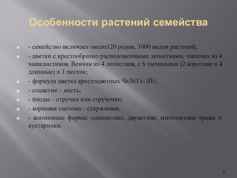 Слайд 2Особенности растений семейства