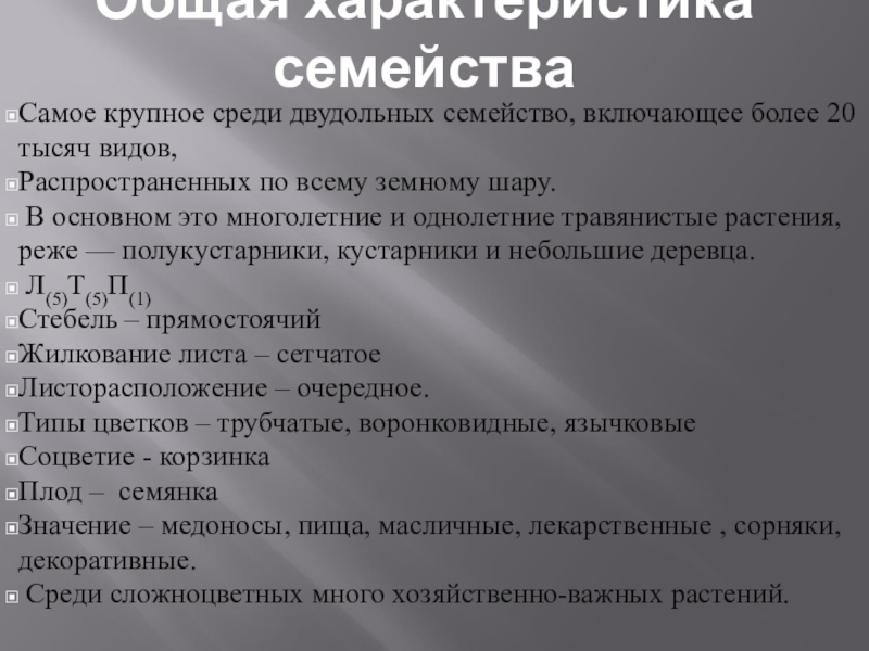 Самое крупное среди двудольных семейство, включающее более 20 тысяч