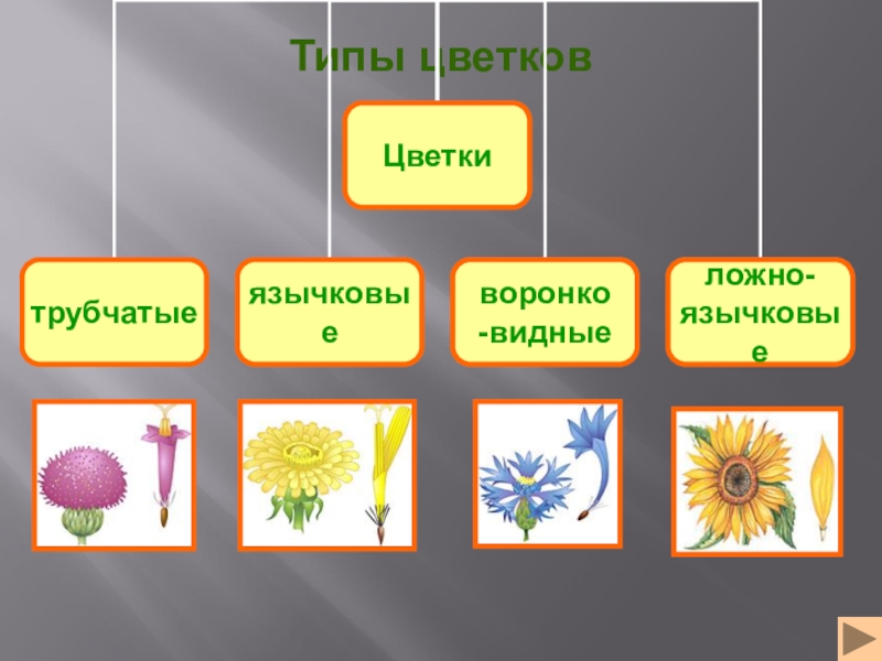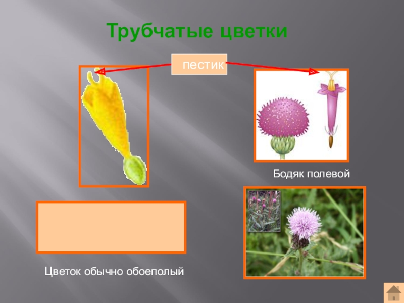 3. Язычковые — обоеполые, с короткой трубкой и пластинчатым пятизубчатым отгибом.