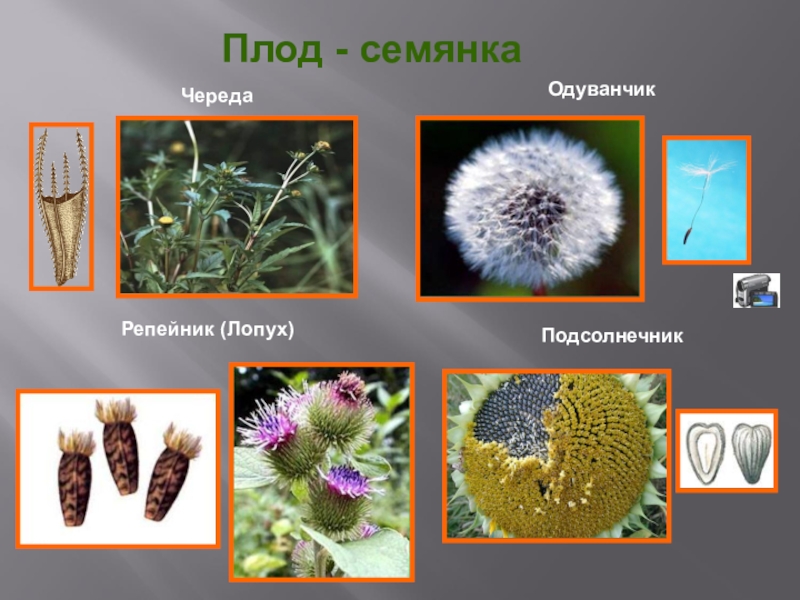 Плод — семянка, окраска плодовой оболочки светлая, светло- и темно-серая, черно-угольная, бурая, полосатая.