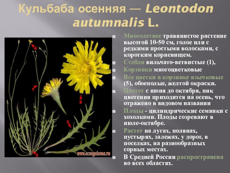 Слайд 49Кульбаба осенняя — Leontodon autumnalis L.