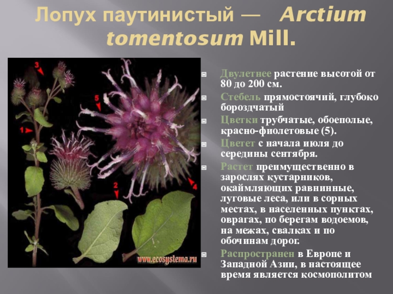 Слайд 50Лопух паутинистый — Arctium tomentosum Mill.
