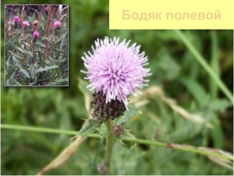 Слайд 46Бодяк полевой, или Розовый осот — Cirsium arvense (L.) Scop. s.