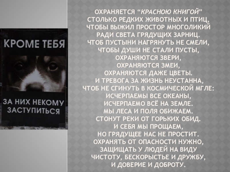 на редких животных запрещена, а на некоторые виды ограничена. Рыбная ловля тоже ограничена. Под особой охраной находятся животные в заповедниках. Помогают спасению редких животных и зоопарки. Когда в заповеднике или зоопарке животных какого-нибудь вида становится много, их переселяют в другие места. Животные связаны между собой в цепи питания. Оберегая одних животных, ты помогаешь и другим. Если, например, охранять лягушек, будет больше цапель, которые кормятся лягушками. Животные связаны и с растениями. Если, например, собирать букеты в лесу или на лугу, будет меньше шмелей и бабочек, которым нектар цветков нужен для питания. Не забывай и о том, что растения дают животным убежище. Оберегая травы, кусты и деревья, ты помогаешь зверям, птицам и насекомым, которые скрываются в их зарослях.