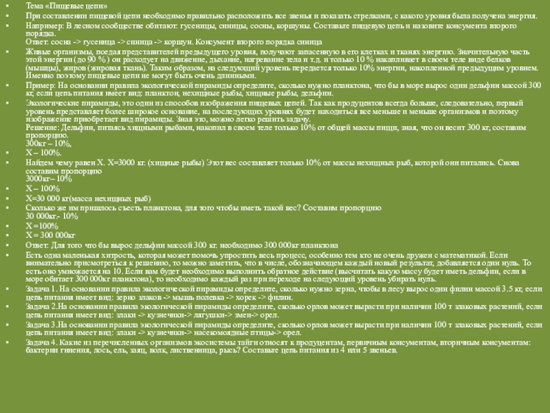 Слайд 29Тема «Пищевые цепи»