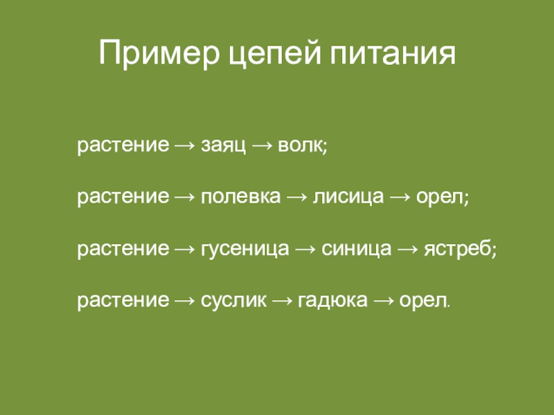 цепями выедания (или пастбищными, или цепями потребления ) например