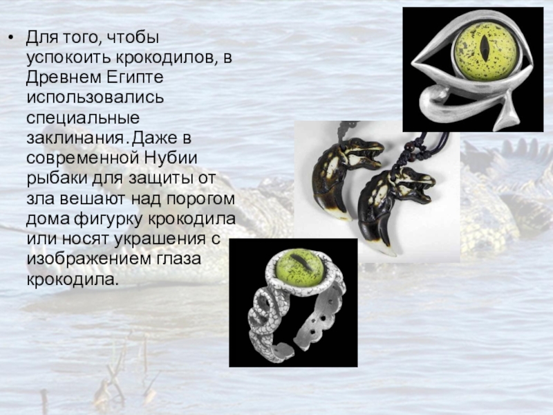 Для того, чтобы успокоить крокодилов, в Древнем Египте использовались специальные заклинания.