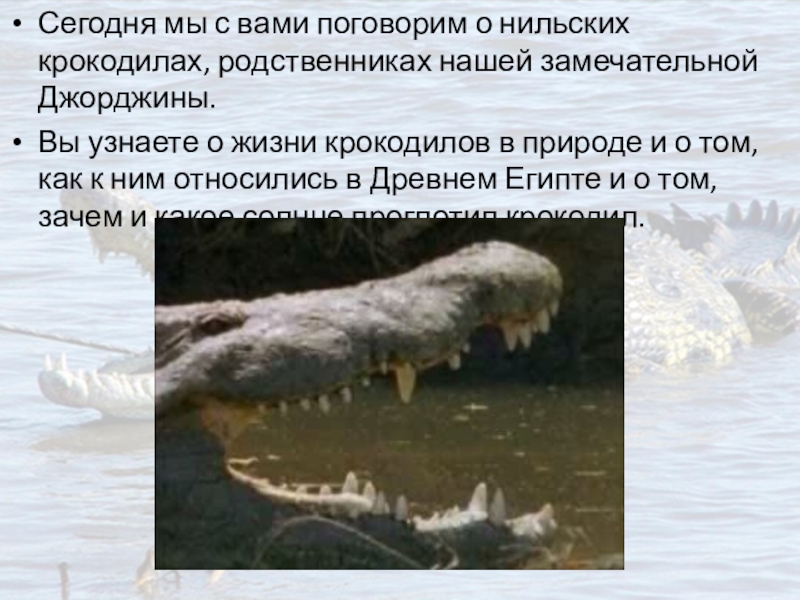 Сегодня мы с вами поговорим о нильских крокодилах, родственниках нашей замечательной