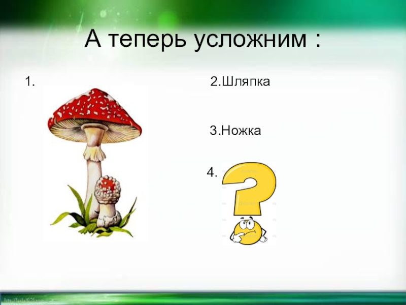 А теперь усложним :1.2.Шляпка3.Ножка4.