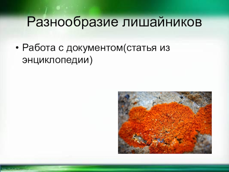 Разнообразие лишайниковРабота с документом(статья из энциклопедии)