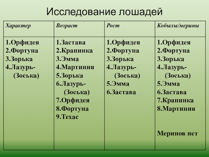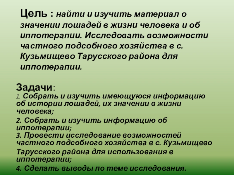 1. Собрать и изучить имеющуюся информацию об истории лошадей, их значении в жизни человека;