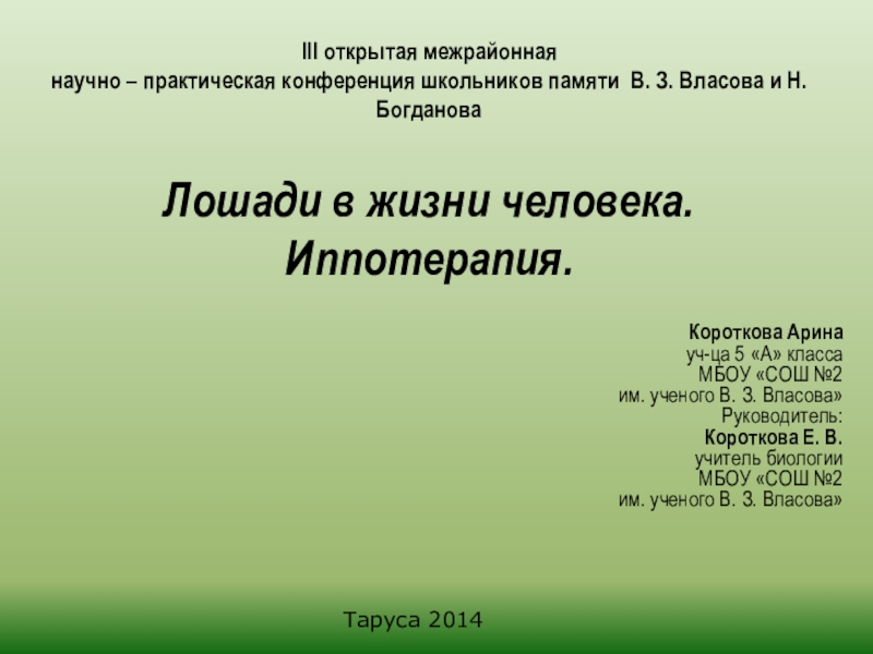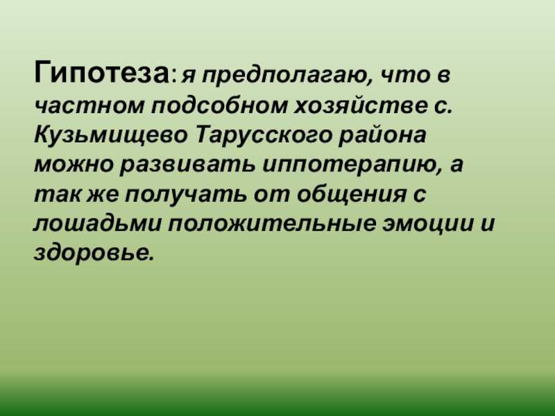 Тарусского района для использования в иппотерапии;