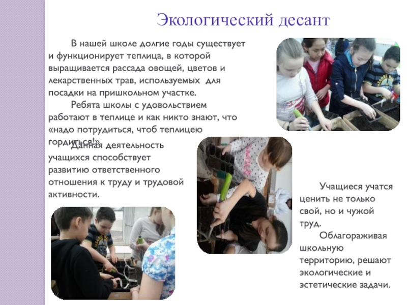 Данная деятельность учащихся способствует развитию ответственного отношения к труду и трудовой активности.